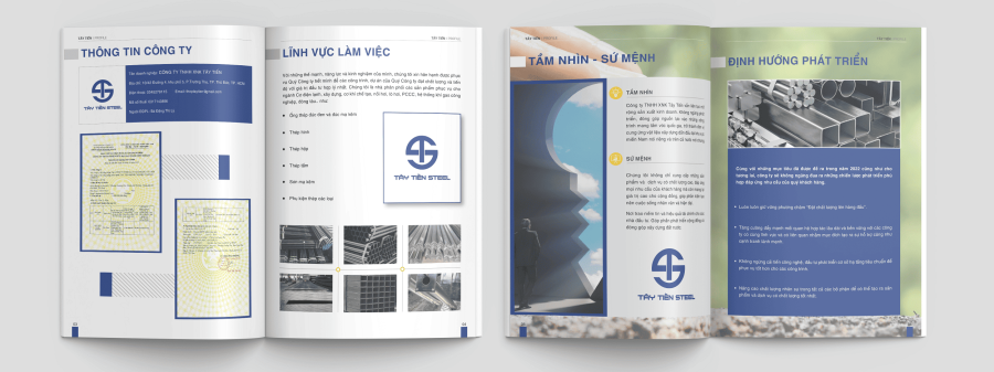 + Bước 3: Thiết kế demo trang bìa + 4 trang ruột để duyệt form trước khi thiết kế tổng thể.